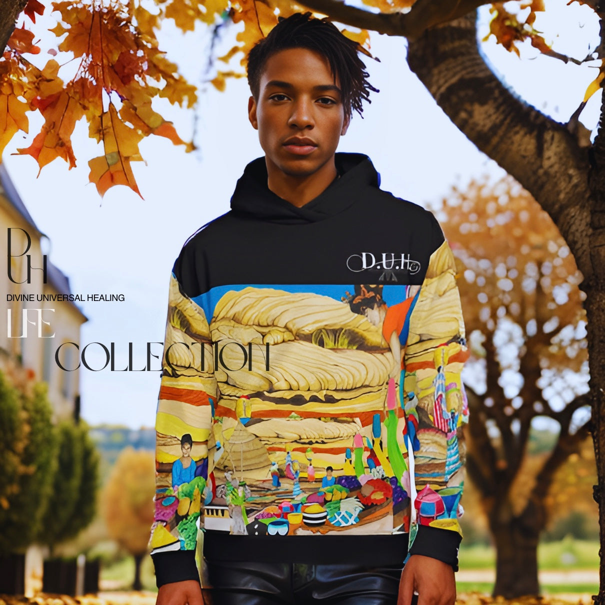 • Double-lined hood with design on both sides