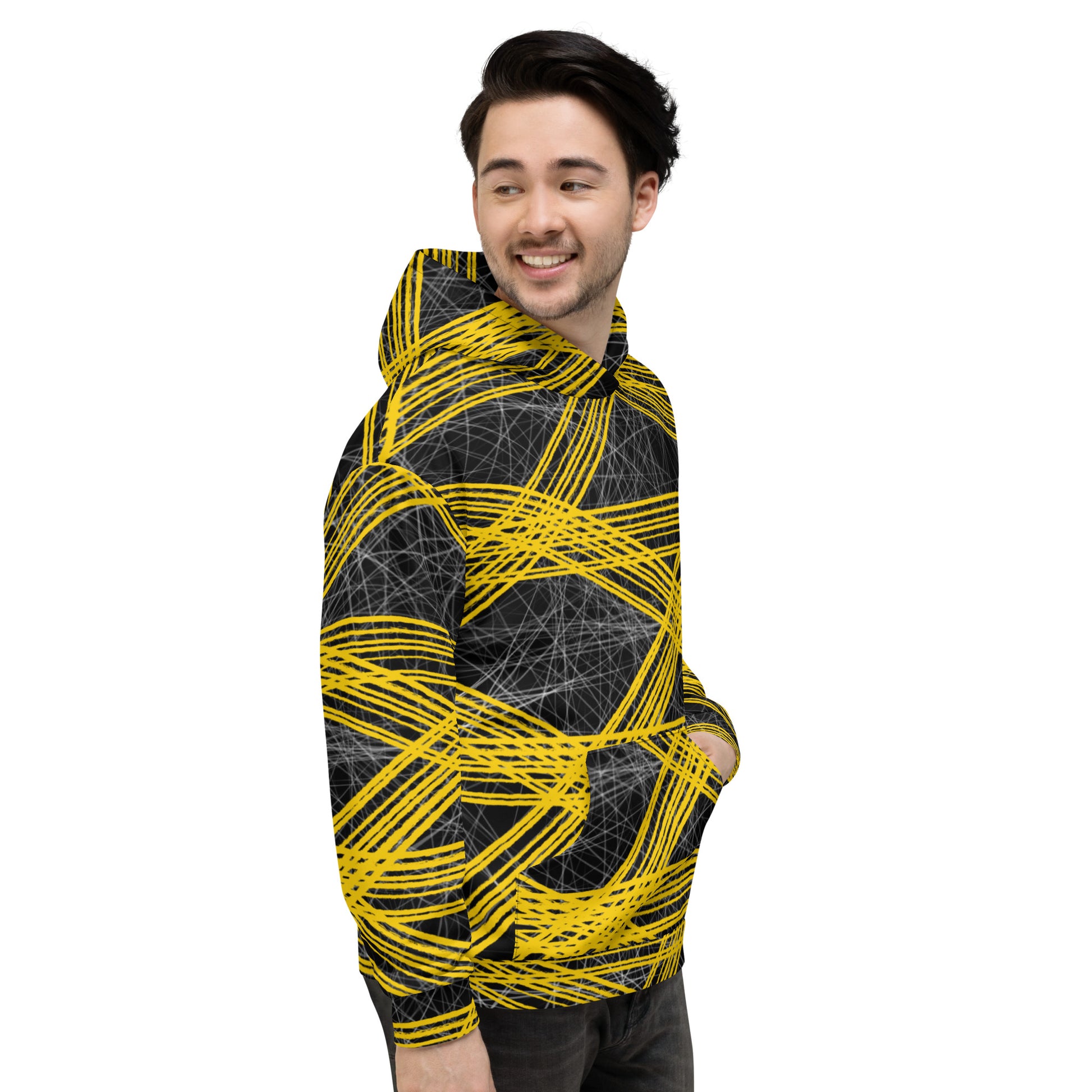 This comfy unisex hoodie has a soft outside with a vibrant print and an even softer brushed fleece inside. The hoodie has a relaxed fit, and it's perfect for wrapping yourself into on a chilly evening.